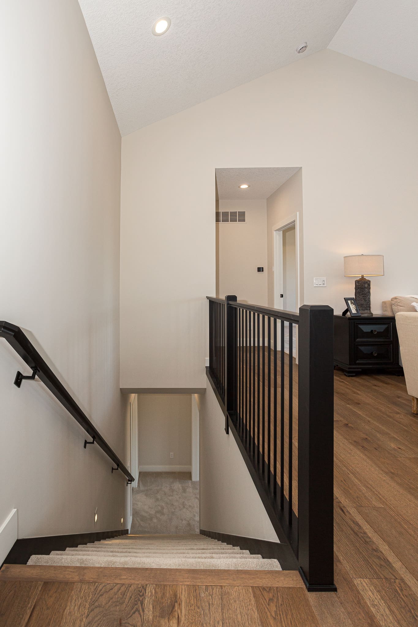 This cottage style ranch home from Advance Homes Inc. has 2,764 total sq. ft. finished. The main floor has 3 bedrooms, 2 bathrooms with open vaulted ceilings, gas fireplace, and an oversized maintenance free deck. The kitchen includes an oversized island with seating and additional cabinet storage on sides and back, plus walk in pantry. The lower level will have 846 sq. ft. finished which will include an additional bedroom, full bathroom, spacious rec room, and plenty of additional storage. This home is being built on a walkout lot so the lower level will be flooded with natural light.